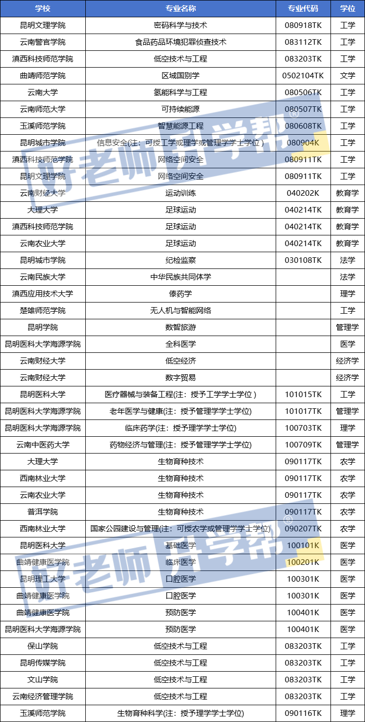 本次拟新增专业的高校中包含23所专升本招生院校,除了云南大学和云南警官学院,曲靖健康医学院三所院校外,其余院校都招生专升本。2026的升本考生可以关注,未来这些专业均有招生可能!