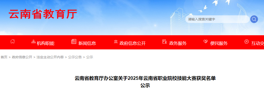 2025年云南省职业院校技能大赛于10月12日至17日举办,比赛类别分为中职组和高职组,中职组共有169所学校1149支队伍3792名学生报名参赛,高职组共有68所学校2580支队伍9371名学生报名参赛。根据选手竞赛成绩,经大赛执委会和组委会同意,现将获得一、二、三等奖选手、指导教师及所属院校名单予以公示。