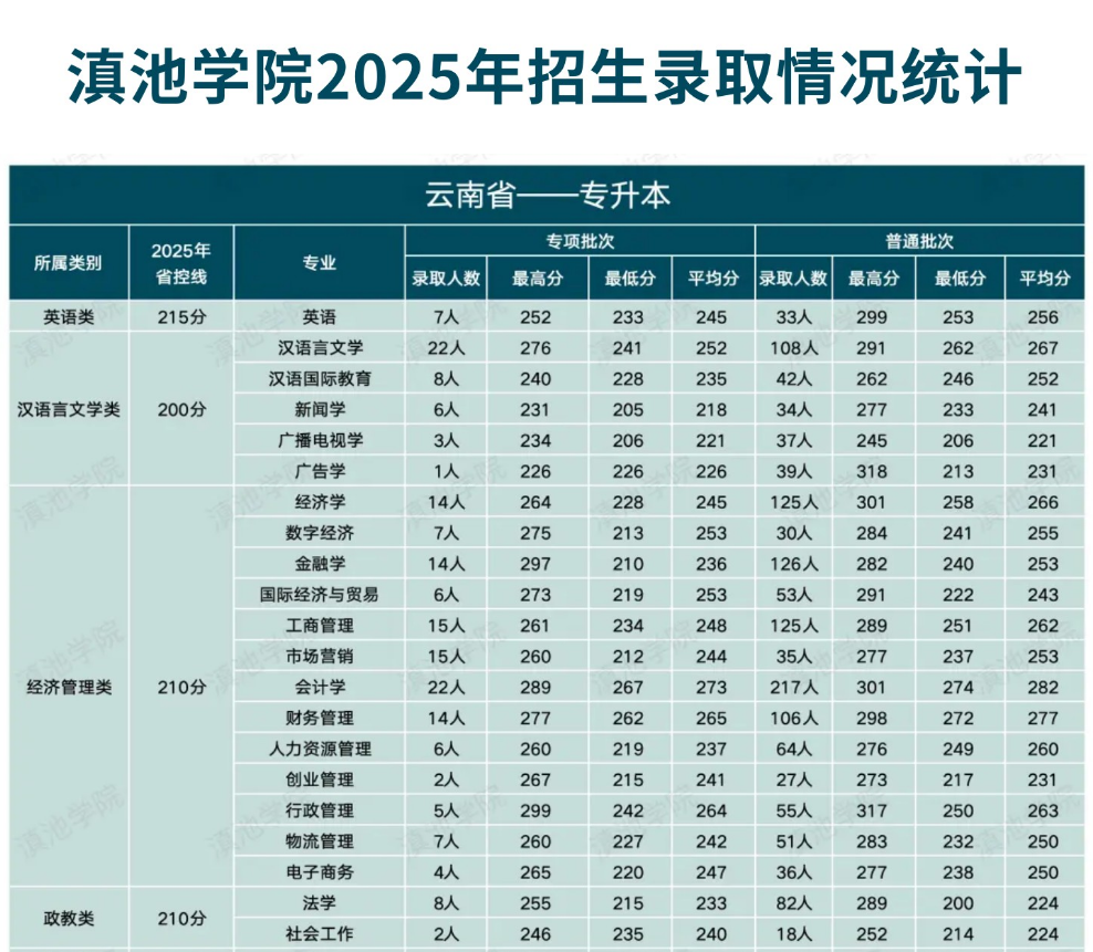 滇池学院专升本2025年录取分数线已经公布了,好老师升学帮整理如下信息,来看看吧!