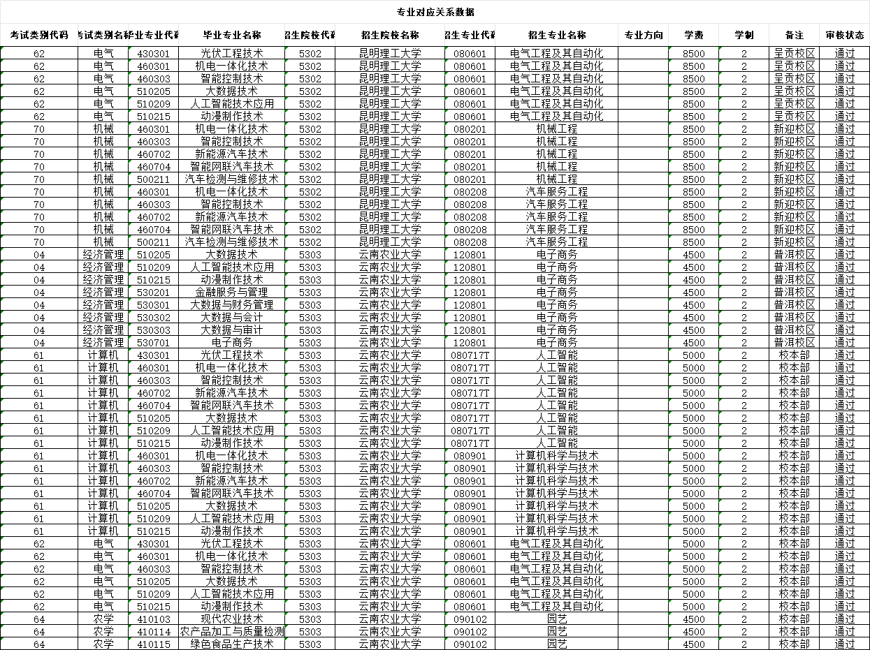 根据云南省招生考试院关于2026年专升本考试报名工作要求,为做好2026年我省普通高等学校本科招收省内普通高等学校全日制应届专科毕业生(专升本)的招生工作,现对学院2026届毕业生毕业专业对应报考的本科院校名称、专业类别、专业名称等相关信息公示详见附件。