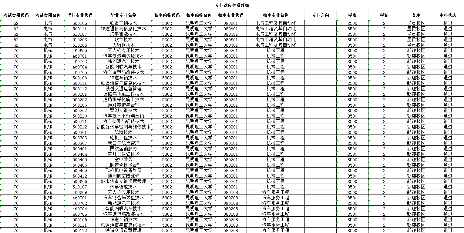 根据云南省招生考试院的相关通知要求,现将我校2026届专升本专业对应关系进行公示,公示时间:12月5—15日,请考生点击以下附件查看专业对应关系数据。如有疑问可与学校招就处联系:0871-68672604。