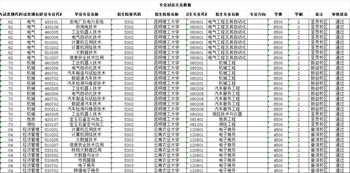 根据云南省教育厅、省招生考试院对2026年普通高校专升本招生工作的通知安排,现对学校毕业专业对应报考的本科院校名称、专业类别、专业代码、专业名称、报考类别等内容进行公示(专业对应关系见附件)。公示期间如有异议,请及时向招生就业处反馈。