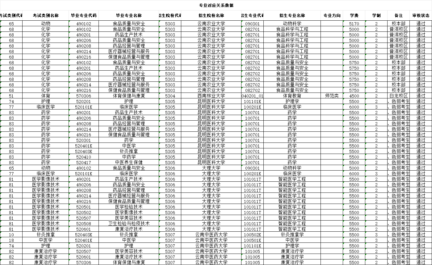 根据云南省教育厅、省招生考试院对2026年普通高校专升本招生工作的通知安排,现对学校毕业专业对应报考的本科院校名称、专业类别、专业代码、专业名称、报考类别等内容进行公示(名单见附件)。公示期间如有异议,请及时向招生就业处反馈。