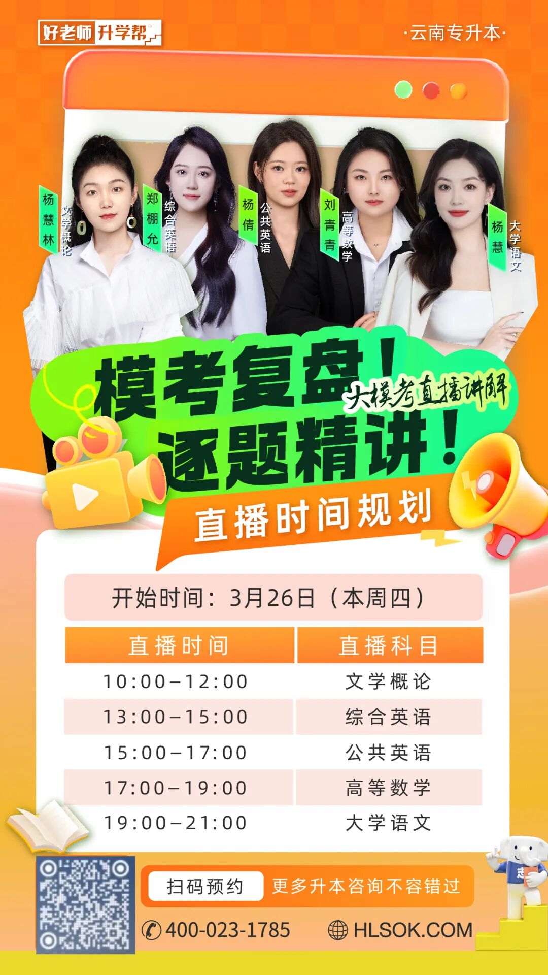 好老师升学帮云南教研团队精心打造「考前冲刺周」公益直播正在进行中,从考前准备到考点冲刺到模考复盘,全流程免费护航,陪你冲刺最后一程!