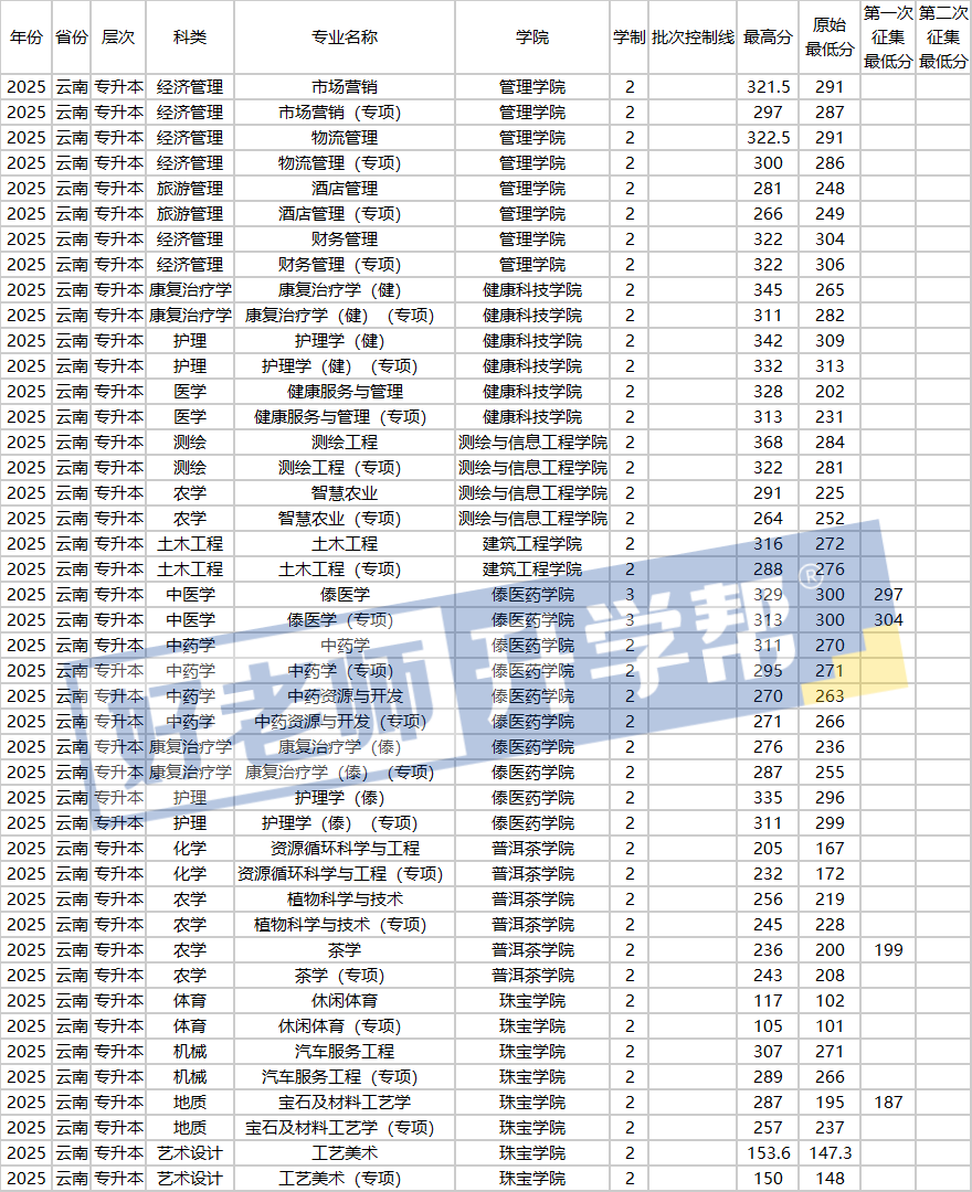 01PART滇西应用技术大学2025年专升本实际录取情况02PART云南中医药大学2025年专升本实际录取情况