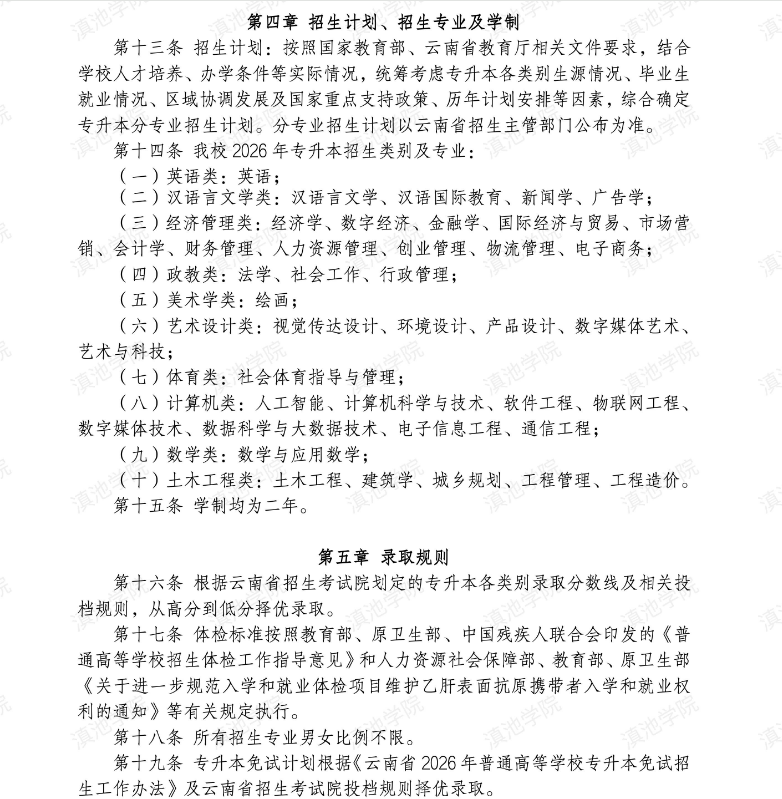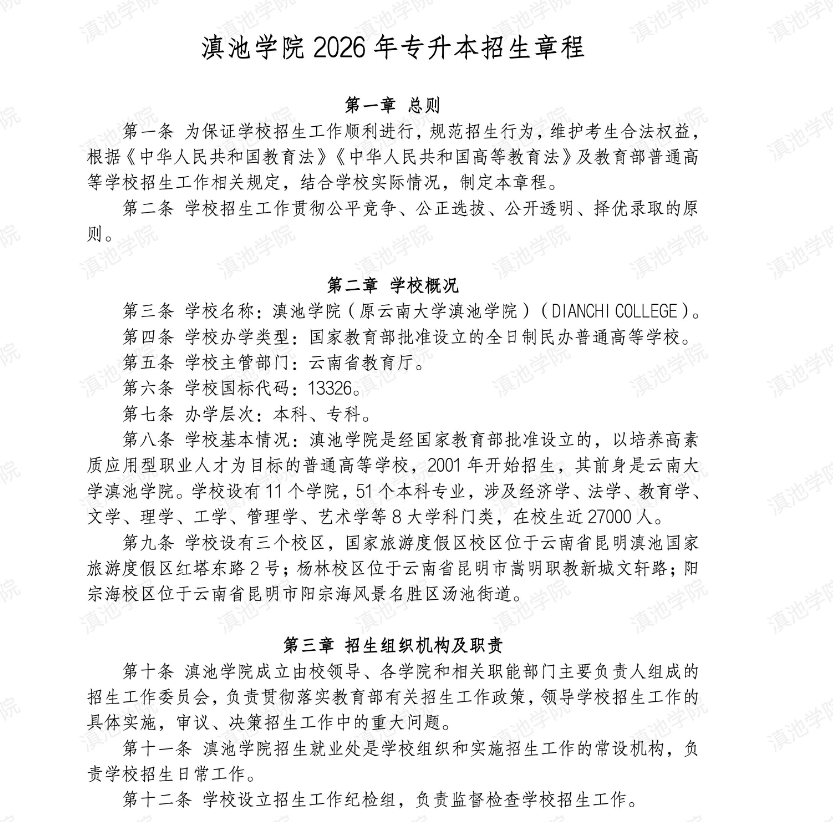 本文是滇池学院2026年专升本招生章程,由好老师升学帮整理供大家参考!