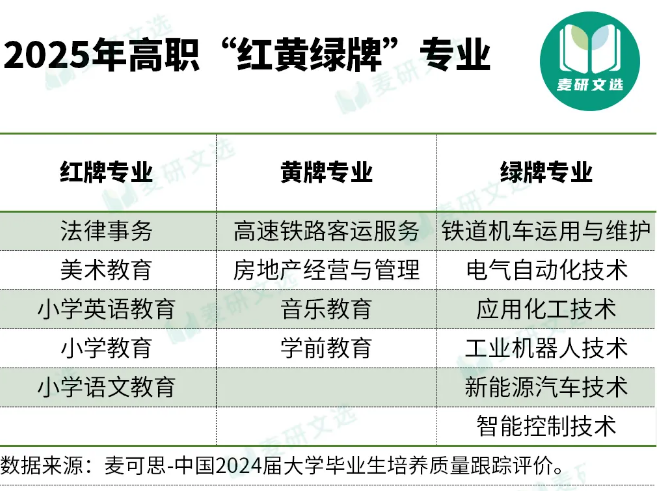 今天我们将揭晓2025年高职红黄绿牌专业——